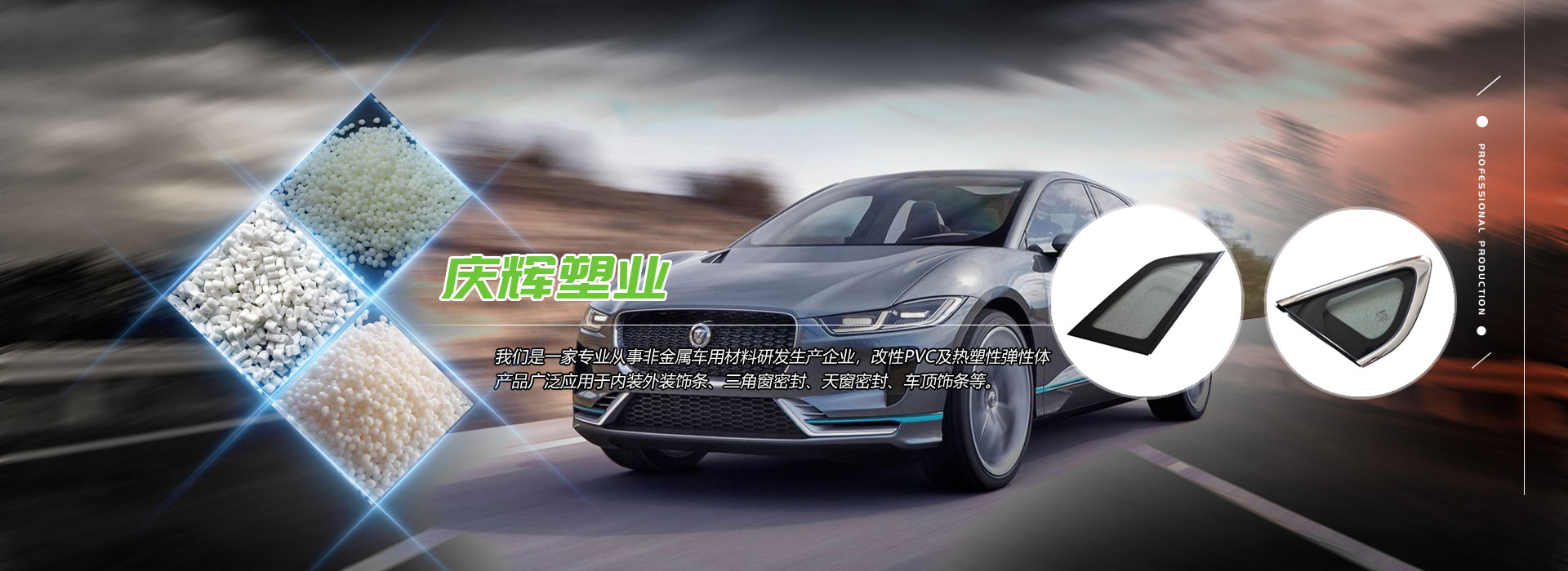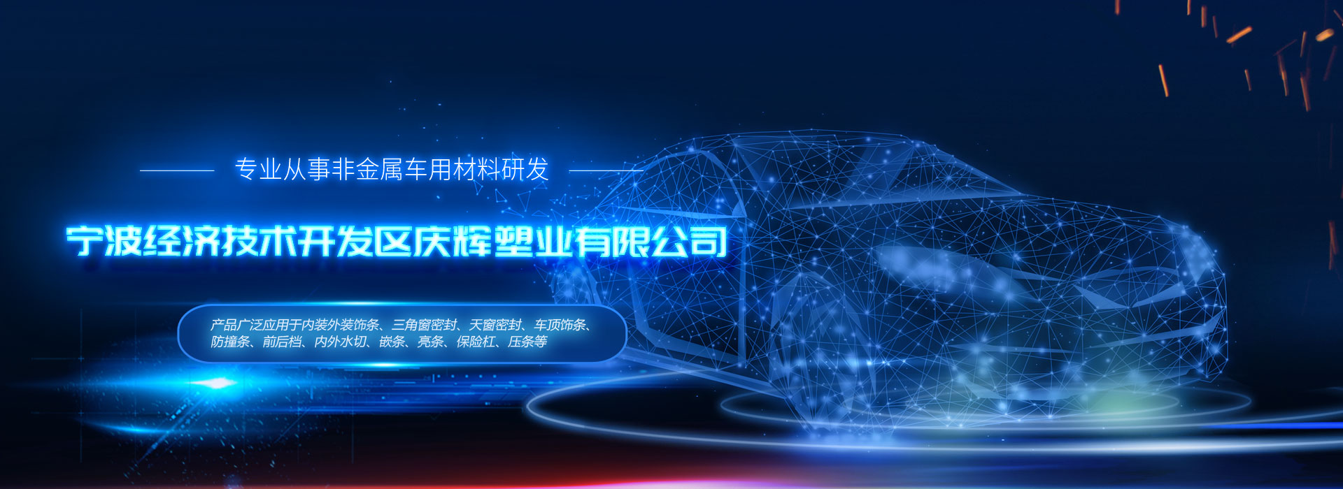 宁波经济技术开发区庆辉塑业有限公司是一家专业从事非金属车用材料研发生产企业,改性PVC及热塑性弹性体(TPE、TPV、TPR)产品广泛应用于内装外装饰条、三角窗密封、天窗密封、车顶饰条、防装条、前后档、内外水切、嵌条、亮条、保险杠、压条、防滑板、各种护边条、上装侧装饰条--函盖汽车的方方面面,力争为全球客户提供更专业、更优质的产品、服务和解决方案。